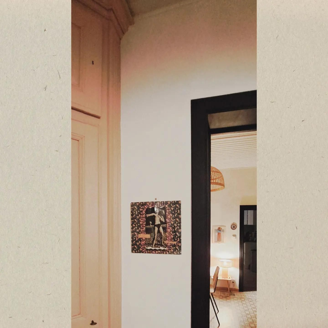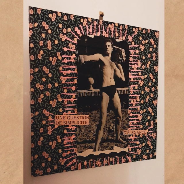 Collage papier sur tissu / sous cadre en verre