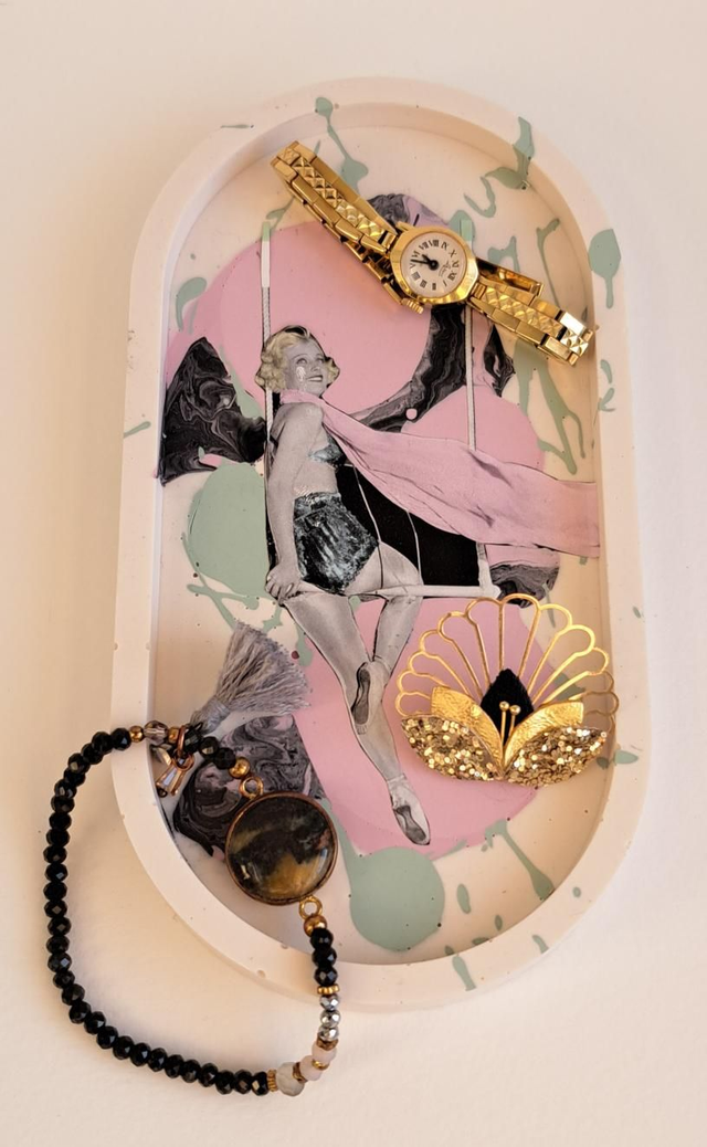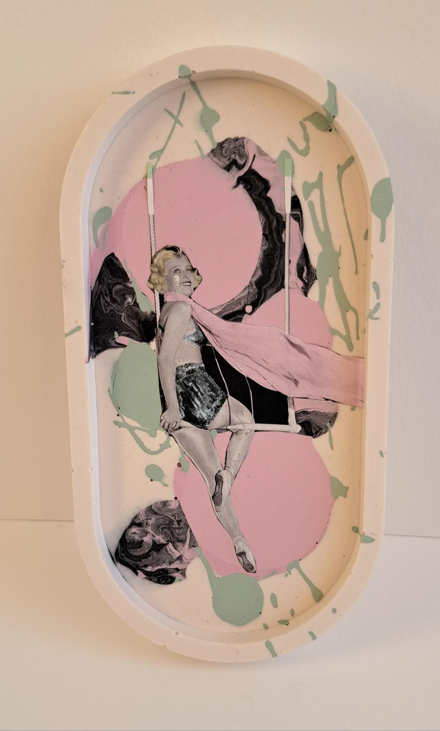 Plateau en jesmonite et collage papier.