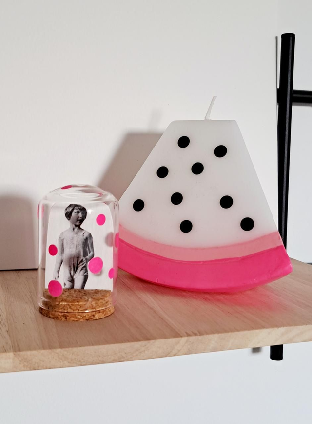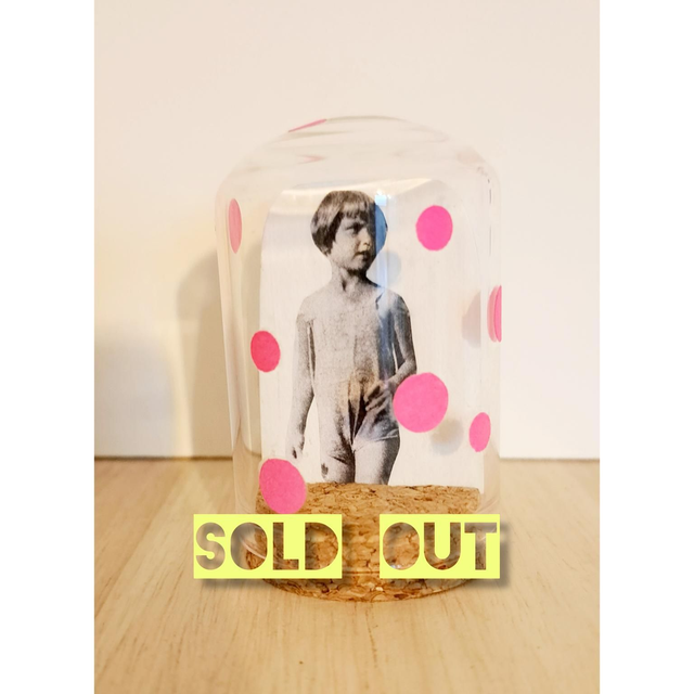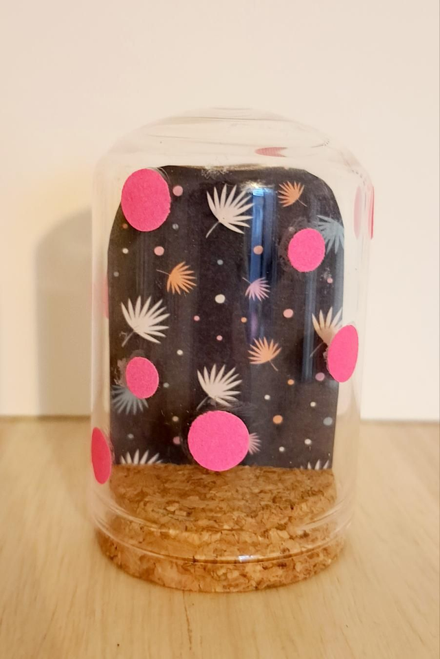 Collage papier sous une mini cloche en verre.