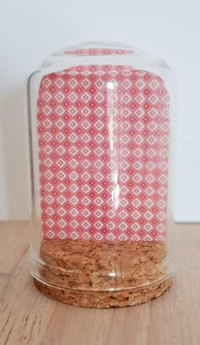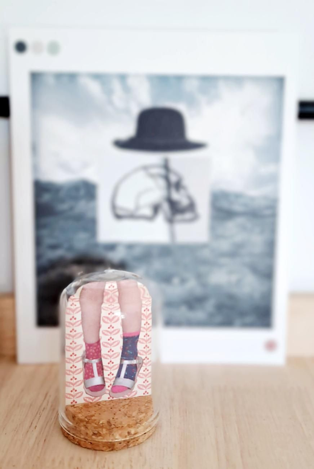 Collage papier sous une mini cloche en verre.