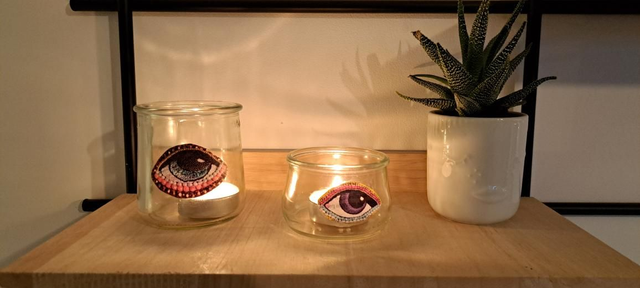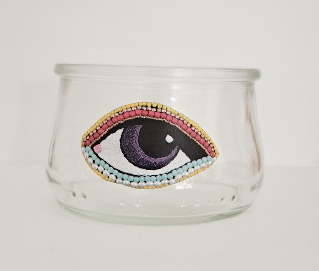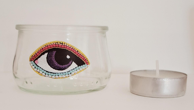Photophore en verre (récup') et collage papier.