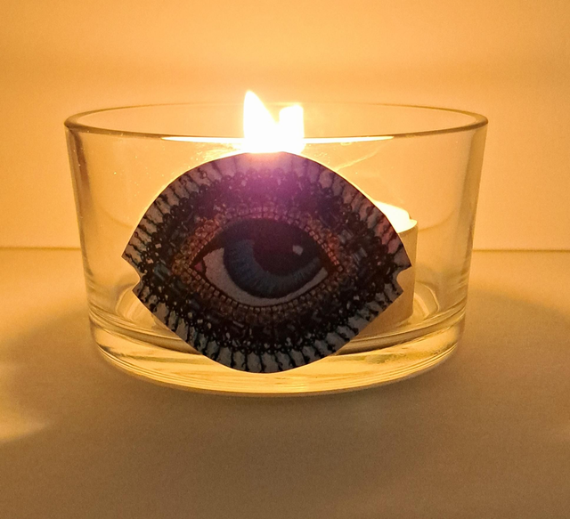 Photophore en verre (récup') et collage papier.