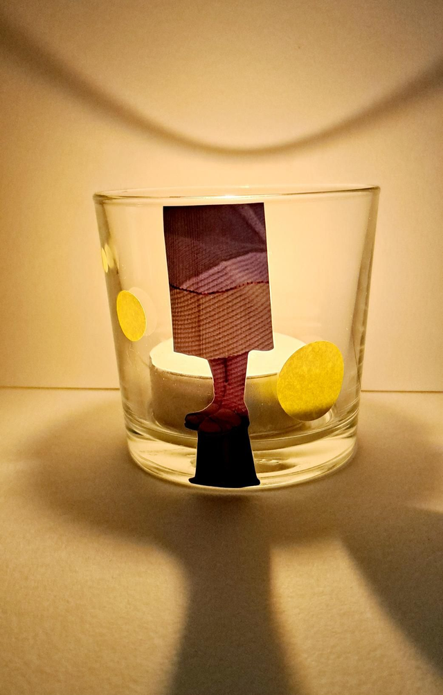 Photophore en verre (recup') et collage papier.