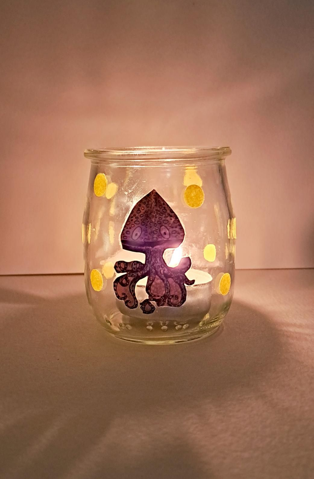 Photophore en verre (récup') et collage papier.