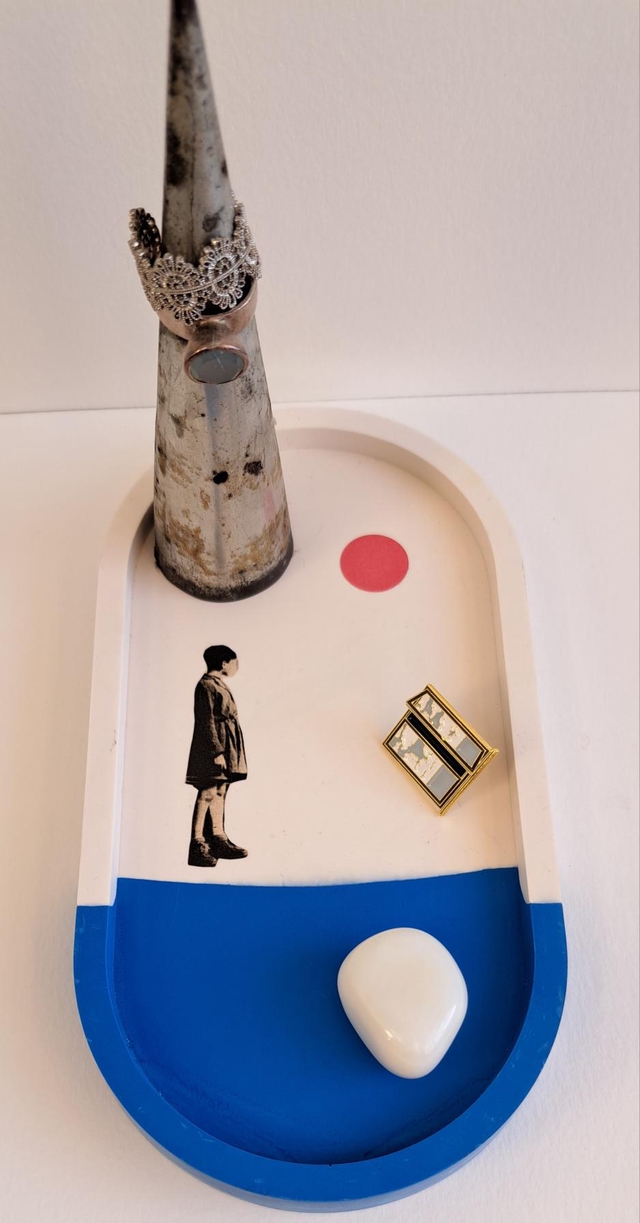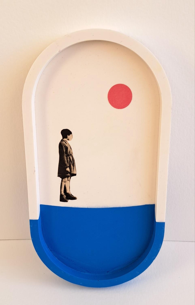 Plateau en jesmonite et collage papier.